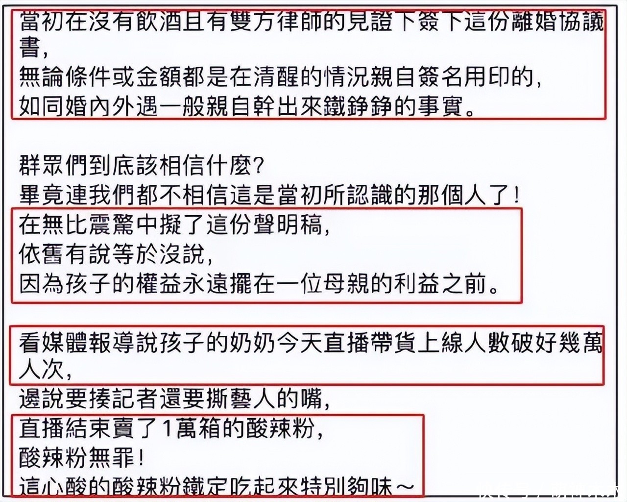 汪小菲开播的本事还疑似恢复此事,说莫得蹭谁的流量,也不认为卖酸辣粉丢东谈主,一家公司能作念大靠的不是一个东谈主的发奋,是悉数使命主谈主员的付出。但关于大S牙东谈主所说的夺抚育权和契约问题,也莫得作念出明确恢复。