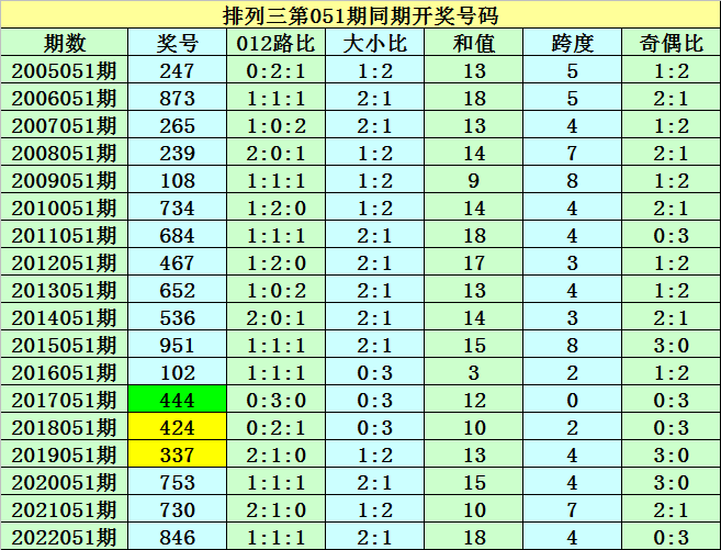 本期为枚举三第2023051期开奖,开奖日历为:2023年3月2日,历史上枚举三第051期已开出了18次奖号,积年同时开出号码离别为:247-873-265-239-108-734-684-467-652-536-951-102-444-424-337-753-730-846。